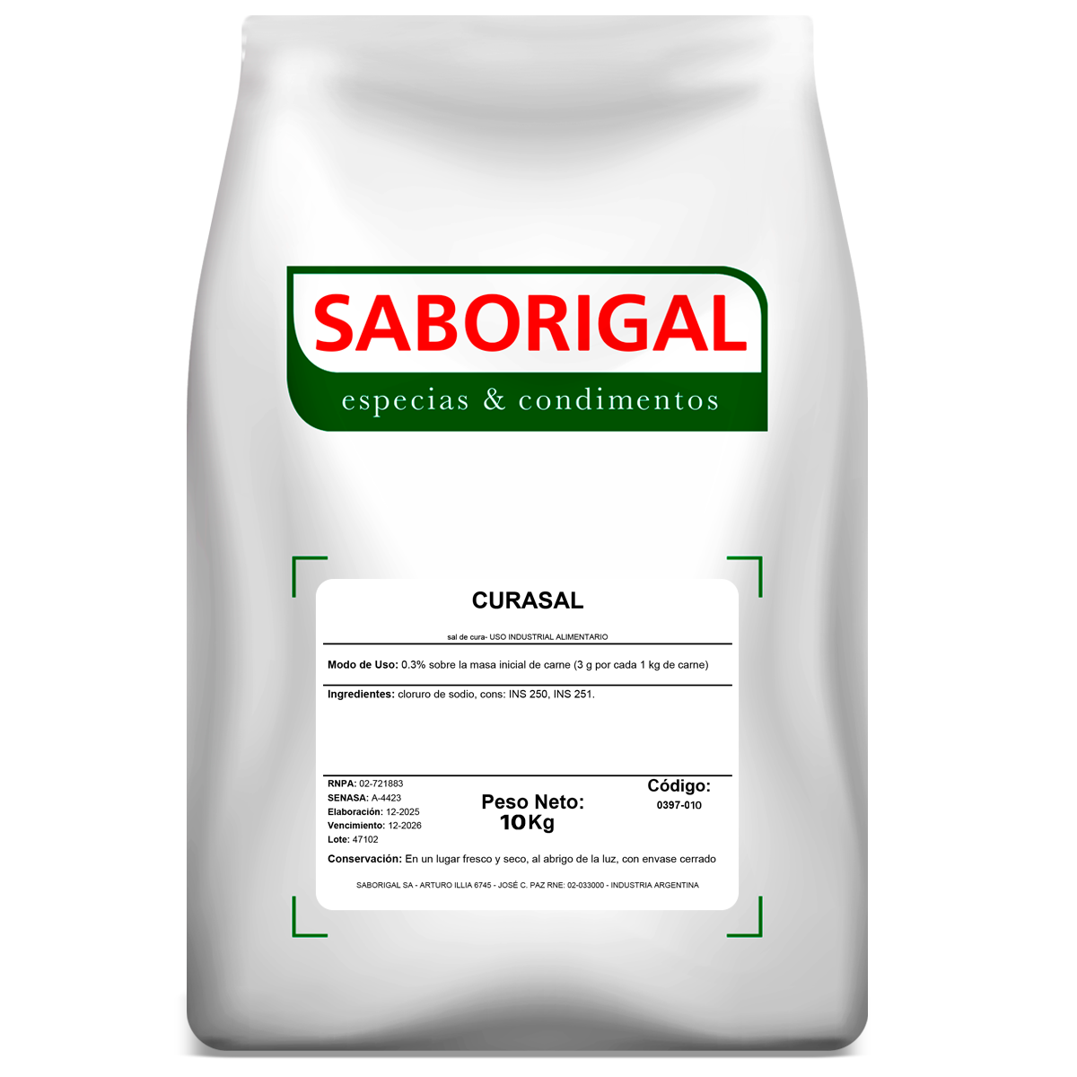 El Curasal es un insumo indispensable para la elaboración profesional de embutidos y carnes curadas. Se trata de una mezcla perfectamente equilibrada de sal fina seca, nitrito de sodio y nitrato de sodio molidos, diseñada para actuar como el agente protector y estético fundamental en todo proceso de charcutería.Seguridad Crítica y Aplicación Profesional:La función primordial de la Curasal es garantizar la inocuidad alimentaria. Es la barrera técnica más efectiva para prevenir el desarrollo del botulismo (Clostridium botulinum) y otros microorganismos indeseables durante los procesos de maduración, secado o almacenamiento. Al inhibir el crecimiento bacteriano, proporciona al elaborador la tranquilidad de un proceso controlado y seguro, protegiendo tanto la producción como al consumidor final.Beneficios para tu Negocio: Atractivo Visual Insuperable: Fija y estabiliza el color rojo-rosado característico de los buenos fiambres, evitando que la carne se oxide o se vuelva grisácea por el contacto con el aire. Perfil de Sabor Tradicional: Aporta ese matiz de "sabor curado" que define la identidad de los mejores chacinados artesanales e industriales. Estandarización de Calidad: Gracias a que sus componentes (nitritos y nitratos) están finamente molidos e integrados con sal, asegurás una distribución homogénea en todo el pastón. Prolongación de la Vida Útil: Optimiza la conservación de los productos, permitiendo una mejor rotación de stock y reduciendo las mermas por deterioro sensorial.Modo de Uso y Dosificación:Al ser un producto de alta precisión técnica, se debe respetar estrictamente la dosificación para garantizar los resultados deseados: Dosificación: Utilizar 3 g de Curasal por cada 1 kg de pastón (lo que representa un 0,3% sobre el peso total de la masa de carne). Aplicación: Incorporar directamente durante el proceso de mezclado, asegurando una integración total con la proteína de la carne.Composición: Sal fina seca, Nitrito de Sodio molido y Nitrato de Sodio molido.Presentaciones adaptadas a tu escala: Bolsas de 1 kg: El formato ideal para carnicerías de autor y elaboradores artesanales. Bolsas de 10 kg: Envase de alto rendimiento para frigoríficos y fábricas de chacinados.